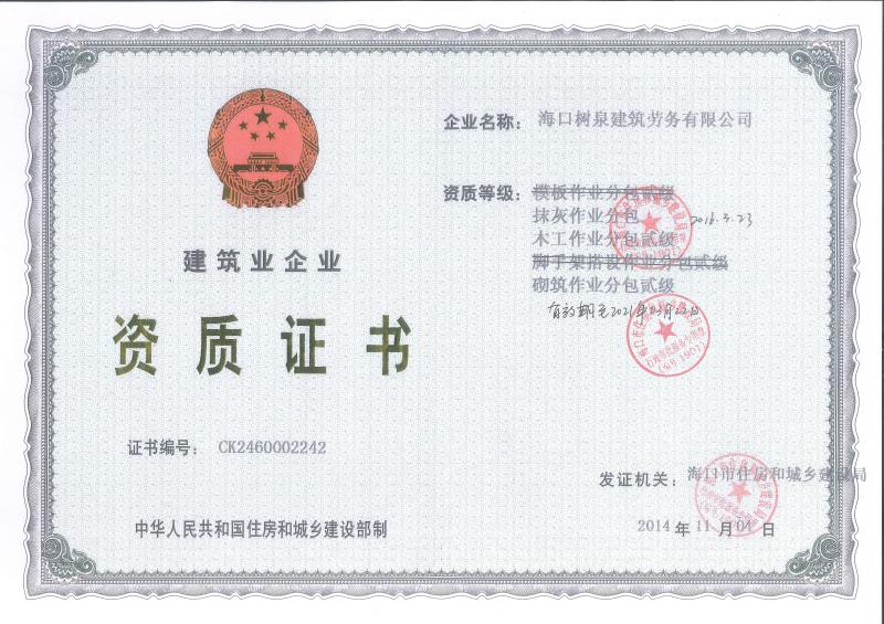 ??跇淙ㄖ趧沼邢薰境闪⒂?011年,公司位于??冢淝吧硎且患覍I建筑施工隊,自2004年即開始在海南從事建筑勞務施工。自成立至今,公司已經擁有一支科學管理、質量過硬、能打硬仗,搶工期的專業隊伍。能獨立承擔大中型工業與民用建筑 、室內外裝修、各類機電設備安裝工程。代表工程有海口濱海華庭、三亞時代海岸T01/02/04/05棟高層、合肥東?;▓@二期、陵水富力灣B區高層、三亞金中海(酒店)、瓊海大印經典花園、??诃h球海景大酒店(四星級酒店,在建中)、陵水珍珠大廈(五星酒店)、??谌f達廣場、美蘭機場二期。